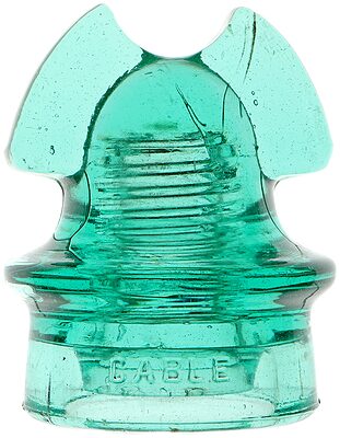 Lot 148: CD 260 CABLE [010] Color: Aqua Description: Note this insulator has an inner skirt, making it much less common than examples with a single petticoat. Some small dings and scuffs on the base, otherwise very near mint. Don't overlook this piece; it's much less common than you think, valued in the Price Guide at over 10 times the value of its CD 259 single petticoat counterpart. An uncommon embossing, seldom seen for sale, and a must for power collectors or those looking for something unusual! Estimate: $400 - $500 Open: $1 Price Realized: $286 |