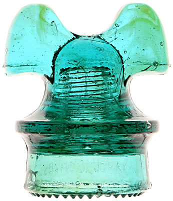 Lot 114: CD 257 HEMINGRAY [060] Color: Aqua w/ Amber Swirls Description: Note this is the [060] embossing where the "0" in 1890 is engraved on top of a "3". You can see some amber in the skirt, a little more in the left ear, and a moderate amount in the right ear. The only significant damage to report is just 1 chipped drip point. If you want a swirly-eared Mickey with an embossing error, this is the one for you! Estimate: $150 - $200 Open: $1 Price Realized: $462 |