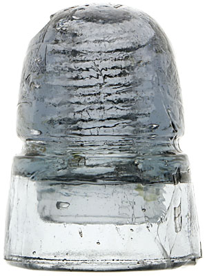 Lot 68: CD 145 BROOKFIELD [230] Color: Blue Gray Description: Quite an unusual color for a "CREB" (Crown-embossed Brookfield) insulator! It has a bit of a purple tint. 1/8" by 3/4" base flake. It has a crude surface with chunks of glass pressed into the glass. During annealing there was an inclusion in the glass. This caused a flake on the dome which is about 1 1/2" by 1" by 1/8" at the left mold line, mostly visible from the rear. A few dings here and there. This insulator will contrast well with your other purple and green shades! Estimate: $300 - $400 Open: $1 Price Realized: $275 |