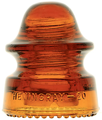 Lot 99: CD 164 HEMINGRAY [040] Color: Orange Amber Description: This is a classic Hemingray color for a piece that's hard to find. The style was know as the "Extra Deep Groove Double Petticoat" in the trade. 1/2" inner skirt chip, otherwise about very near mint. A desirable and standout piece to add to your CD 164 Hemingray collection! Estimate: $550 - $600 Open: $1 Price Realized: $908 |